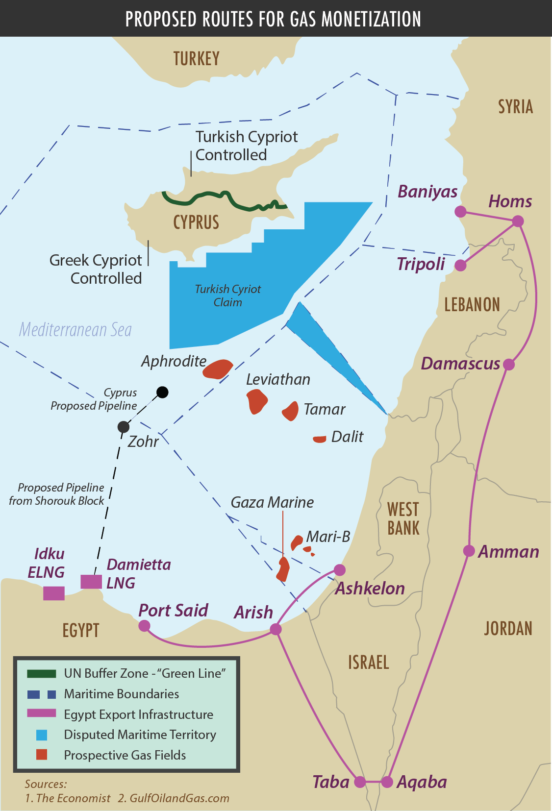 The potential benefits of the newly discovered offshore gas fields, and the fierce disagreements the discovery has engendered, should also spur the two communities and their international partners to aggressively seek a settlement. Without a political resolution, most of the region’s gas will likely remain un-extracted. A settlement, however, would facilitate the cooperative and peaceful exportation of Mediterranean gas from Egypt, Israel, and the island of Cyprus and would reduce overdependence on Russian gas in the European market. [10] This would be a welcome geopolitical development in Washington. Moreover, Turkey’s position on the issue has left it sidelined in regional energy discussions. [11] Both Ankara and the U.S. stand to gain from a more regionally interconnected Turkish energy presence. The discovery of the resource has already contributed to a rapprochement between Turkey and Israel, both key U.S. allies; as Congresswoman Ileana Ros-Lehtinen stated in a 2016 Congressional hearing on eastern Mediterranean energy, “the potential to collaborate on natural gas developments played a central role” in the reestablishing of relations between Israel and Turkey. [12]